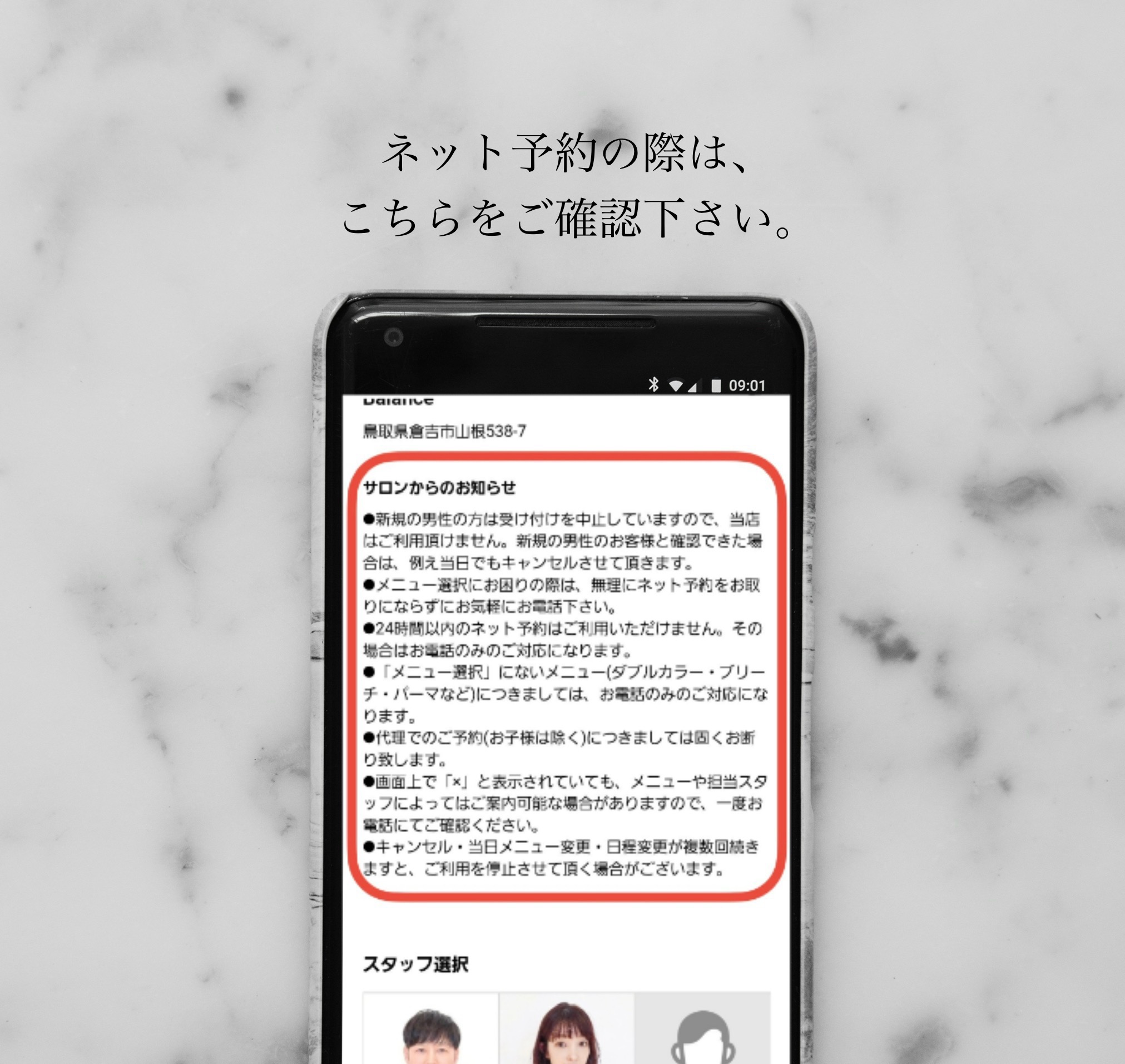 ⚫︎当サロンのネット予約は、新規のお客様はGoogleまたはInstagram(メニュー限定)から、既存のお客様はLINE公式アカウントからご利用いただけます。なお、LINE公式アカウントは一度ご来店いただければその場でご登録いただけます。