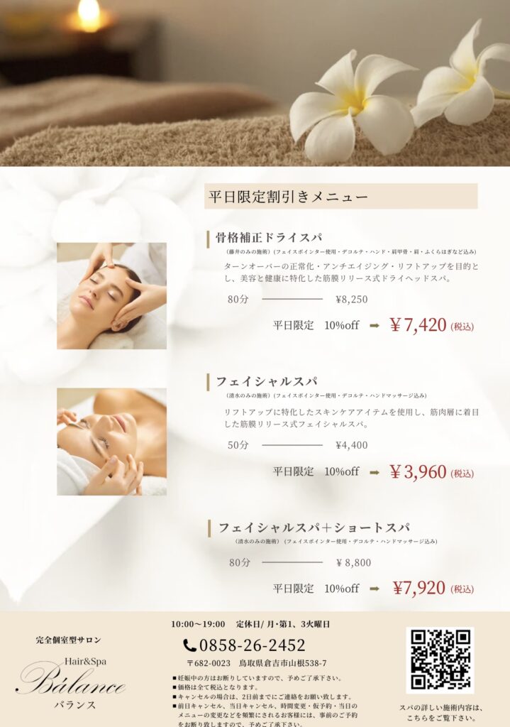 キャンペーン終了のお知らせ 投稿日 2025年7月2日 更新日 2025年7月8日 著者 tetsuo カテゴリー 最新情報 キャンペーン終了のお知らせ。 春から行ってきましたドライヘッドスパ・フェイシャルスパの平日割引きキャンペーンを、7月31日をもちまして終了致します。 まだ受けられた事のない方は、この機会にぜひお待ちしております。