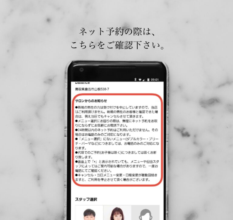 ネット予約の際は、こちらを必ずご確認下さい。 最近、当サロンでもネット予約のご利用が少しずつ増えてき […] -