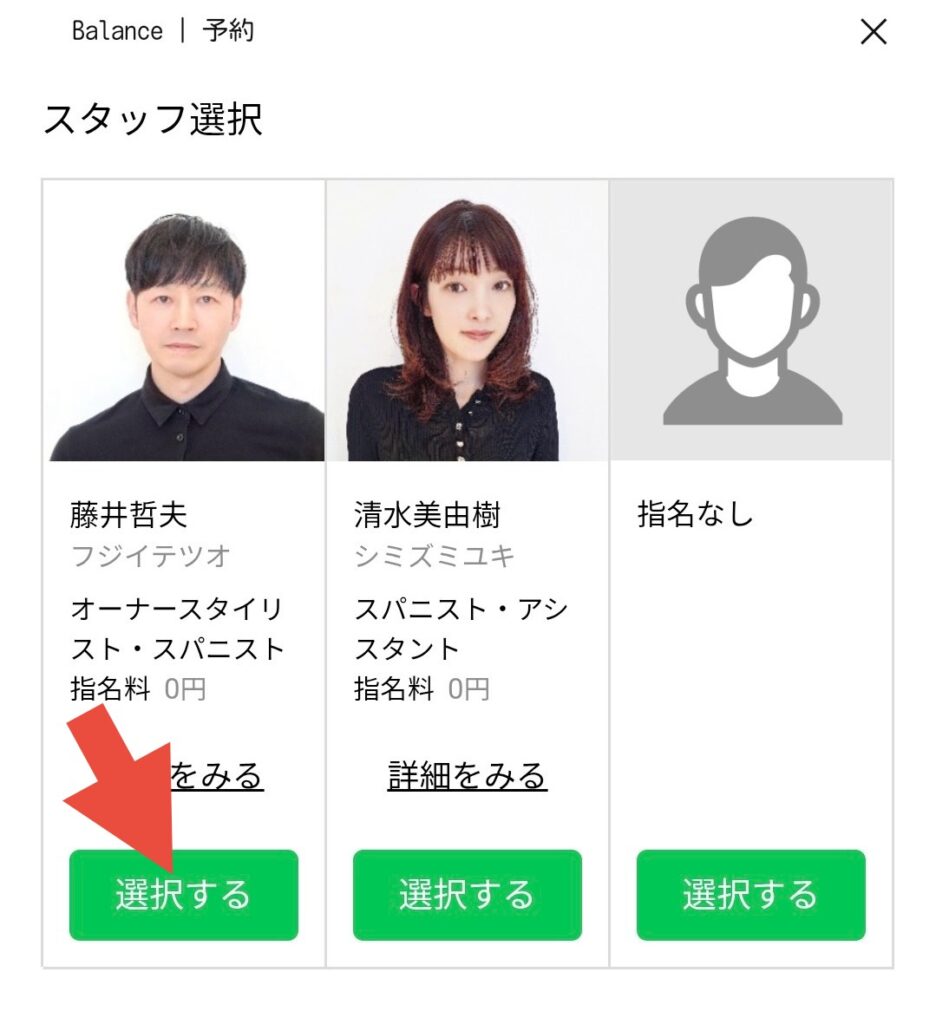 ⚫︎ご希望のスタッフの「選択する」をタップ