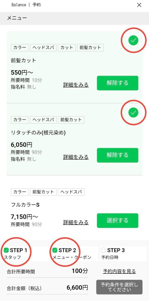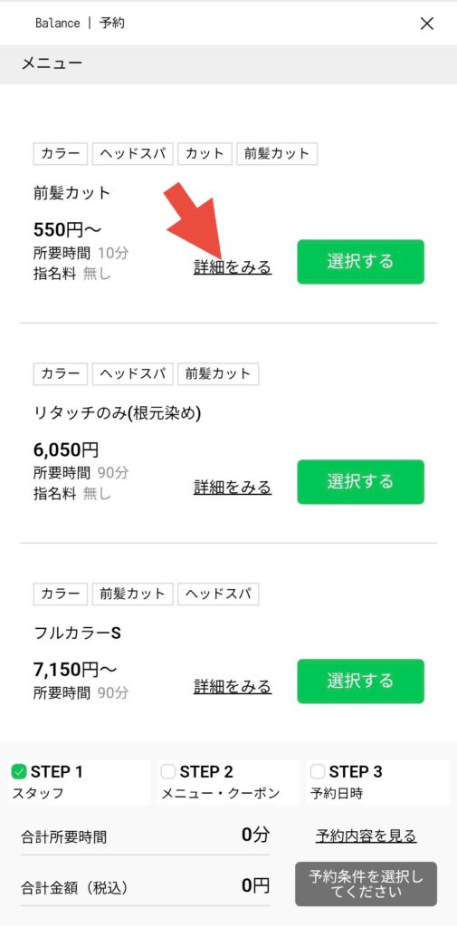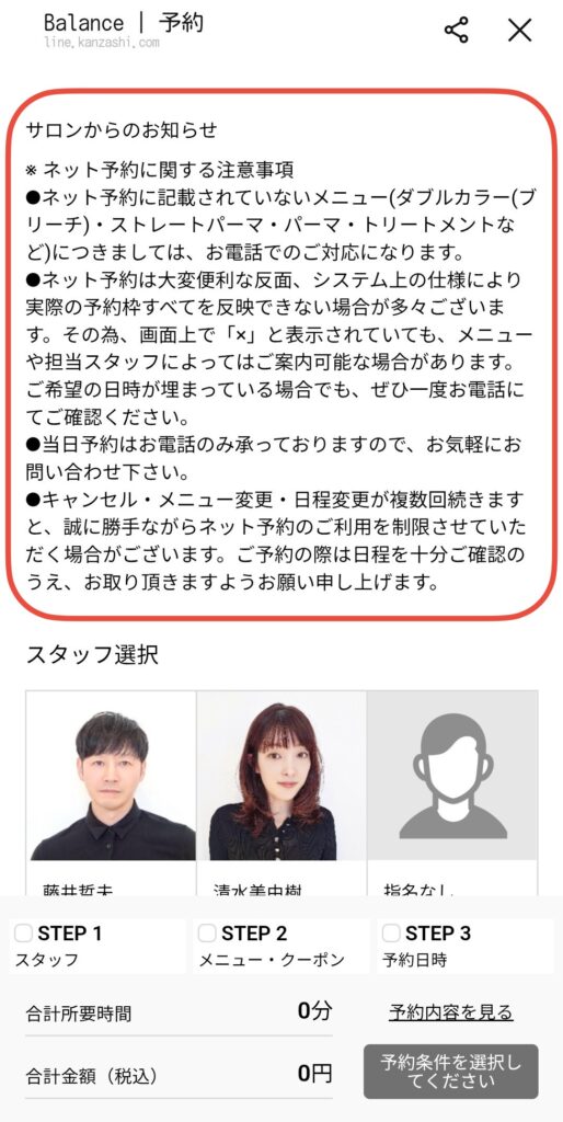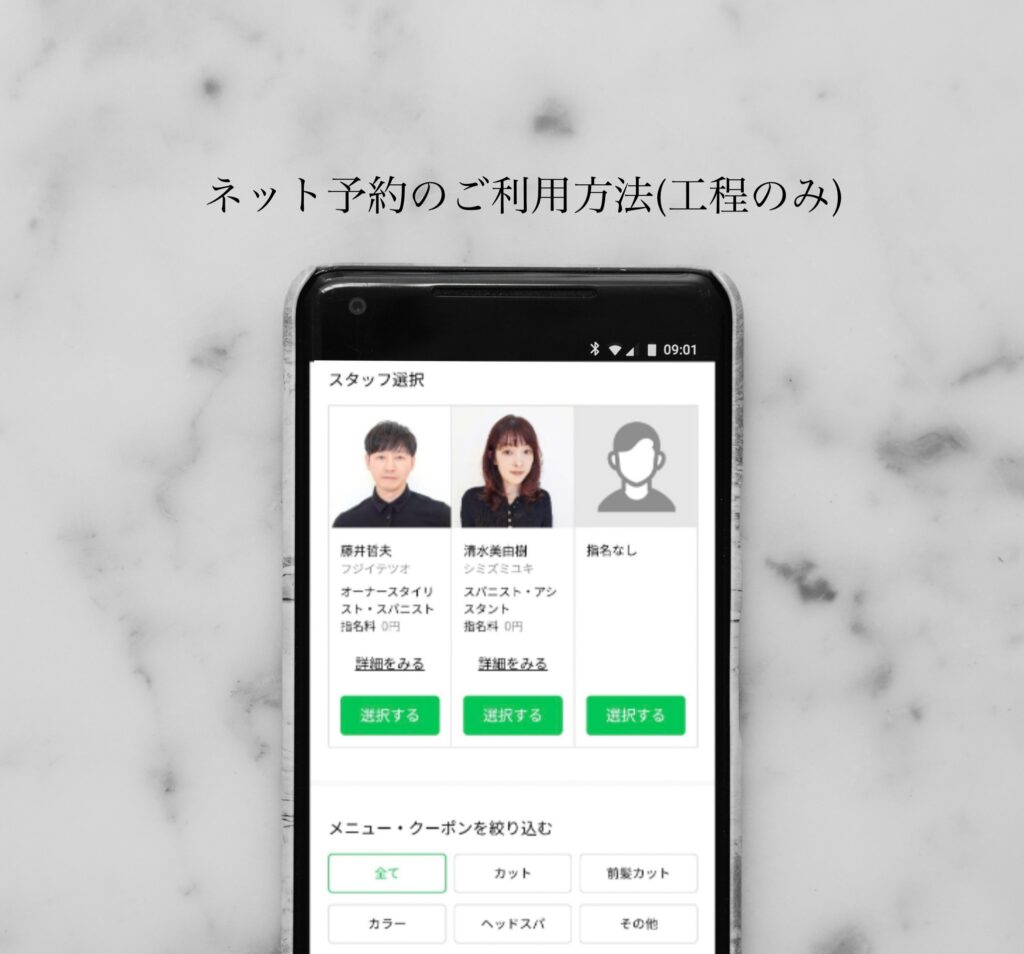 ※スタッフ選択、メニュー選択のどちらが先でも問題無いです。