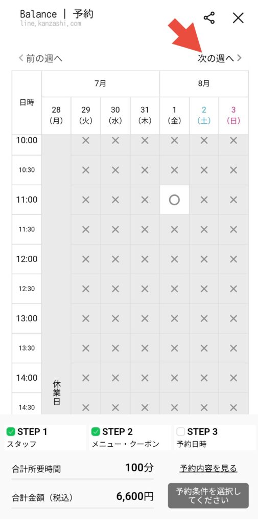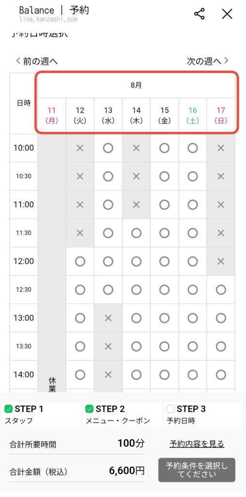 ⚫︎次は、STEP3の「予約日時」の選択です。