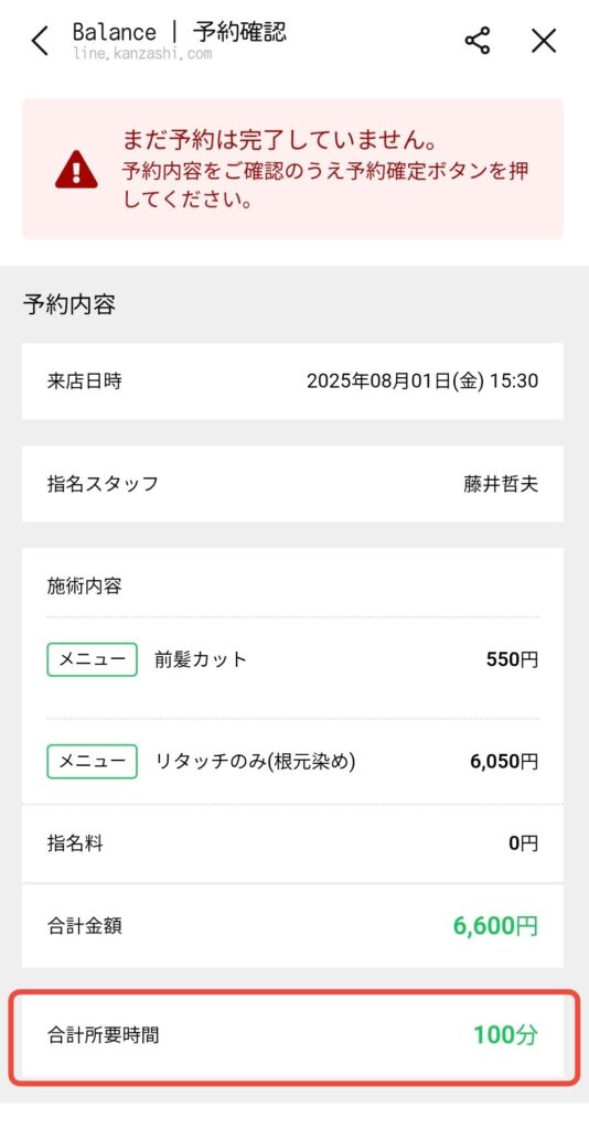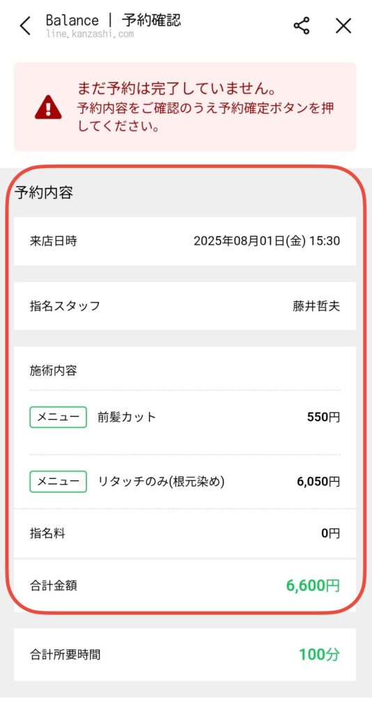 ⚫︎確認画面で「予約内容」をご確認下さい。