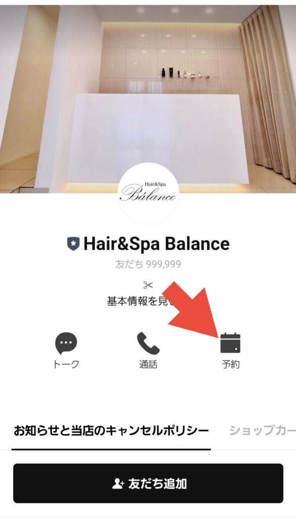⚫︎LINE公式アカウントのトップページからでも、ご予約画面に移動出来ます。