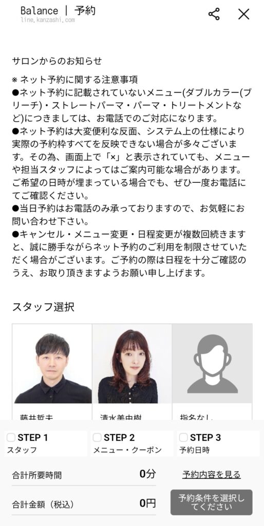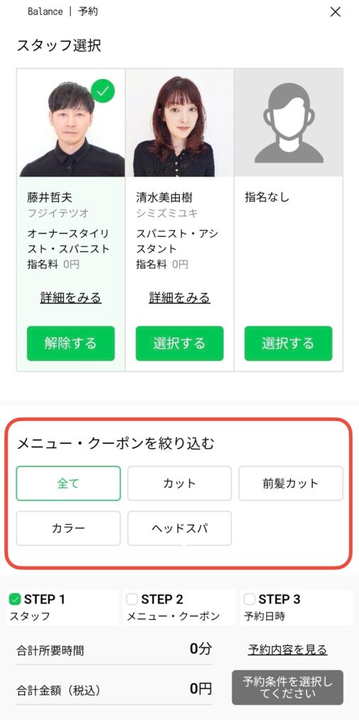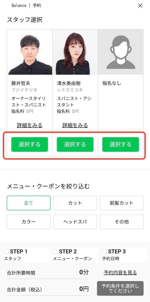 ⚫︎STEP1の「スタッフ選択」をします。