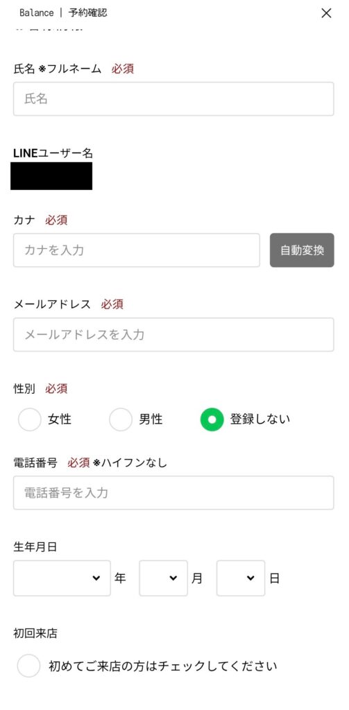 ⚫︎下にスクロールして頂くと、個人情報の入力画面になります。
