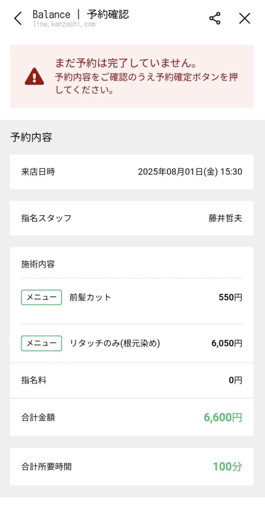 ⚫︎確認画面で「予約内容」をご確認下さい。